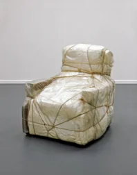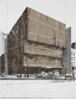 But more interesting than any of the aforementioned evidences of perceived value of the drawings is the reality that Christo has produced drawings for works that neither need a funding or any sort of preparation. In the beginning of his practice, Christo made drawings of wrapped cars, couches, telephones, unrooted trees and many other objects which he also physically wrapped. These drawings had aesthetic purposes separate from the physical wrapping of the objects. By saying Christo’s drawings are created in order to fund bigger projects negates the fact that the early wrapped objects don’t require funding of any sort. Wrapping a chair in his studio by no means takes an exorbitant amount of money, nor does it take much preparatory thought. If you want to know what a wrapped chair looks like, you just wrap it. (fig. 2 &3) Looking at his collaged lithographs of wrapped telephones raises an even more curious situation though. Christo’s ‘Wrapped Telephone’ was made in 1962, however the edition of two-dimensional work for the phone wasn’t made until 1988, 26 years after the physical work was realized. These pieces weren’t created as an exercise for wrapping the object because it was already wrapped. They weren’t sold in order to raise money for the project, because it had been completed for a over quarter of a century. This edition was produced then, as a work of art on its own, separate from the 1962 ‘Wrapped Telephone,’ thus Christo’s drawings can and must be examined separate from the works they are allegedly preparing for.