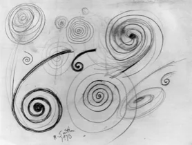 The drawings also act as a platform to imagine the works. In this instance the paper could be looked at as the initial site for the work. Historically, the topic of site-specificity is very much related to Christo because of his close association with land artist (which he has divorced himself from time and time again) as well as other environmental artists. The key difference between his practice and those of the artists in his time however, is that their preparation was far less materialized and completed. When looking at preparatory drawings by Robert Smithson for projects like his ‘Spiral Jetty’ it is very obvious that in fact, the work would not exist until the jetty was actually made. (fig 4) His quick spiral sketches are nothing more than a brief exploration of what the work could become, but it in no way allows the viewer to perfectly imagine what the sculpture may be. Christo on the other hand, completes his drawings and makes aware what the experience of seeing the work will be like. He creates a prequel to the interventions that so clearly and indubitably examine how the project will look, that the drawing itself, in a sense, becomes its own site as it were.