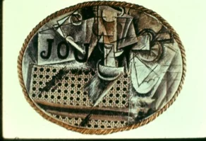 It is very interesting that Christo incorporates tightly rendered, mechanical mediums such as photography and lithography with his loose, gestural drawing. What happens is a provocation of proportions and perspective. By working on top of precisely executed photographs and lithographs Christo once again plays with sensation and what is reality. The reality of the collaged material and very apparent presence of the artist in the lines drawn flattens and disorientates the truest representation of reality on the work: the photograph and/or lithograph. In the same way Picasso calls to question mechanical reproduction in his ‘Still Life with Chair Canning’ (fig. 7) by combining machine made texture with natural painting, making the viewer wonder which is the real thing, and essentially flattening the real texture caused by paint, the photographs in the works by Christo are flattened and pushed into the distance, making them more abstract and gestural than the loose, messy lines atop them. In an essay on what he calls ‘The Flatbed Picture Plane‘ Leo Steinberg explains that shifts in art making in the post war era caused paintings to appear horizontally, rather than vertically, literally flattening their presence. He writes “What I have in mind is the psychic address of the image, its special mode of imaginative confrontation, and I tend to regard the tilt of the picture plane from vertical to horizontal as expressive of the most radical shift in the subject matter of art, the shift from nature to culture.” This shift from nature to culture can appropriated here to explore the specifics of Christo’s general practice. Because of the photography and lithography used to flatten the picture plane and cause this shift, his drawings can be not only a literal representation of what is to come, but also a symbolic metaphor for the projects when they are actualized. He chooses to be associated with environmental artists because he chooses social sites to intervene. By making interventions in these cultural and social sites, he gives the opportunity to question what you are actually experiencing and whether or not it is nature.